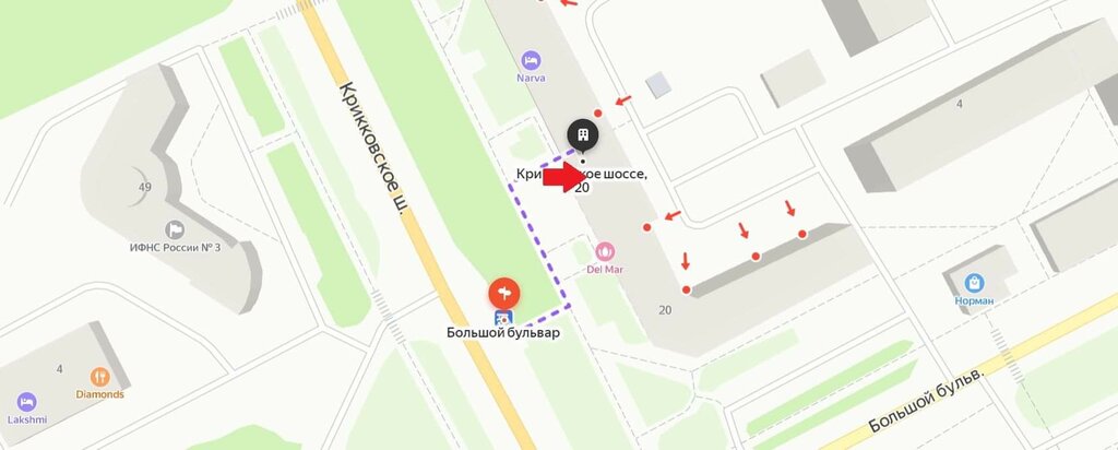 Большой бульварКрикковское шоссеТЦ Аквариум12-й кварталТЦ Ямбург