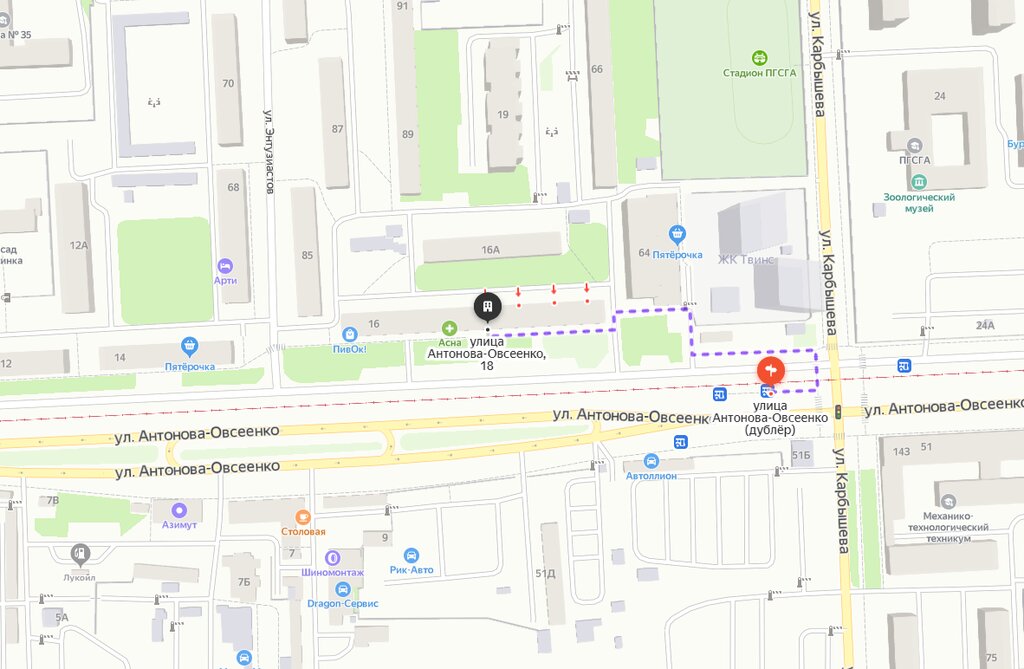 Karbysheva Street / AutomagazinIvana Bulkina StreetPedagogic UniversityDom PechatiУлица Карбышева