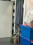 место мало, одна примерочная вместо склада со стеллажами, вторая заставлена ящиками, невозможно зайти, коробки на полу, за оператором, повсюду