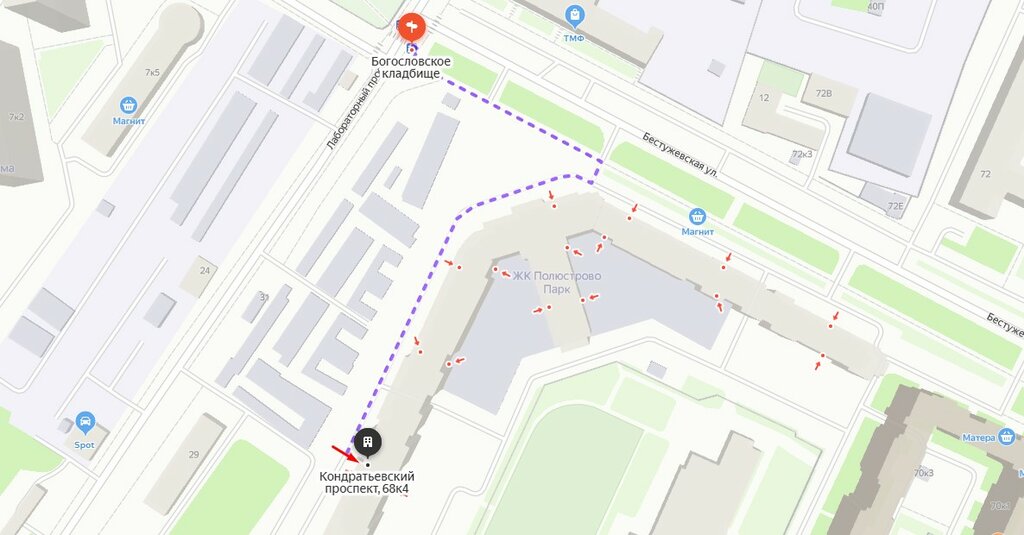 Лабораторный проспект, 25Бестужевская улица – Музей имени А.И. МаринескоКондратьевский проспектЛабораторный проспектБестужевская улица