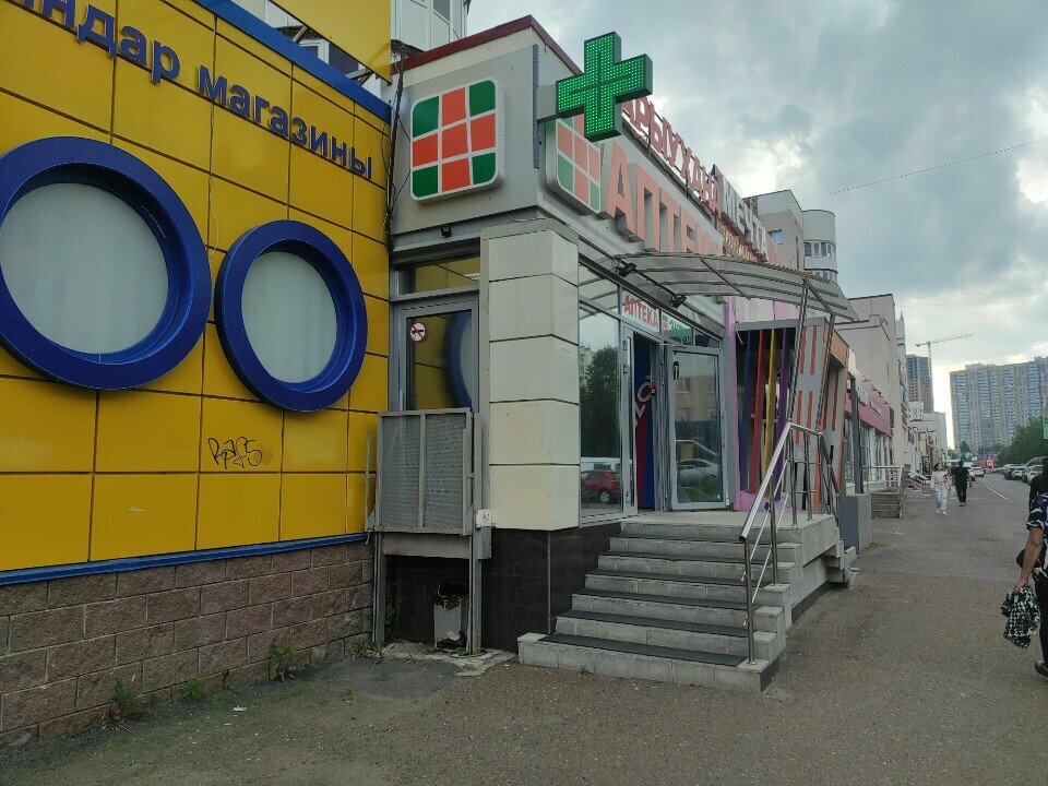Еле нашла, на аптеке даже знаков никаких.