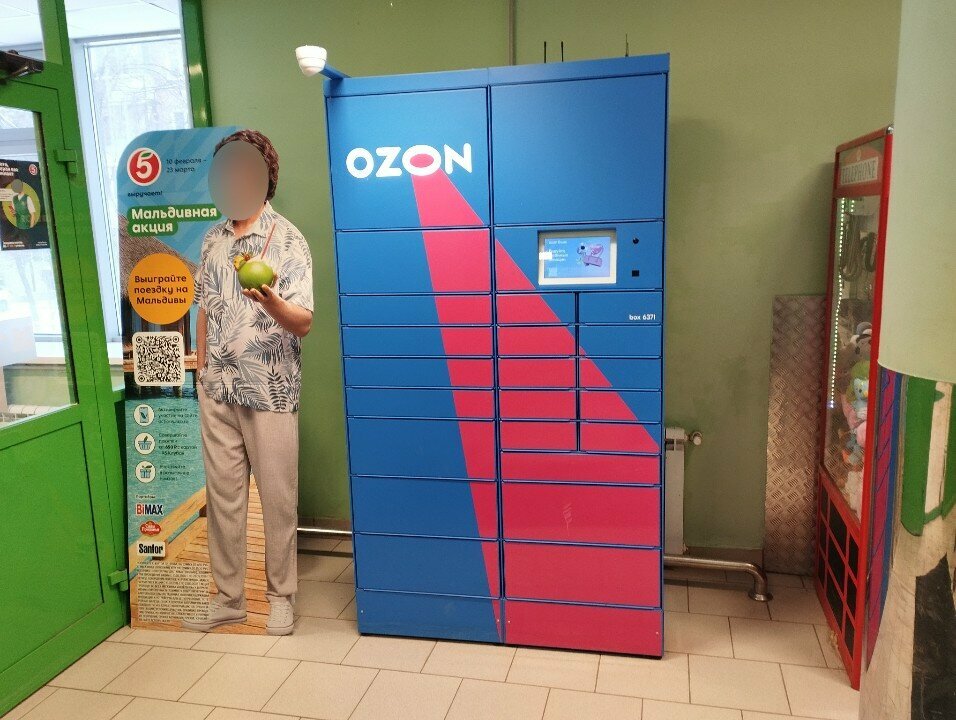 В этом магазине молодцы - хорошо разместили - стоит так, как-будто с самого начала так и было задумано. Ни одного ящика для вещей не убрали. А в соседней "Пятерочке" ящики убрали из-за этого Озона и с вещами теперь не вдруг зайдешь.