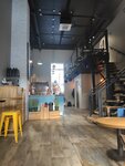 Просторное заведение, но совсем немного удобных посадочных мест. Готовят там же, без вытяжки - стоит сильный неприятный запах. Кофе вкусный, стильно, но как-то непродуманно. Верхний этаж или диван внизу может занять один человек, металлические высокие стулья без спинок не самая удобная мебель, чтобы посидеть, расслабиться. Не понравилось. За кофе зайти - да, но по близости есть места, где так же можно купить хороший кофе на вынос.