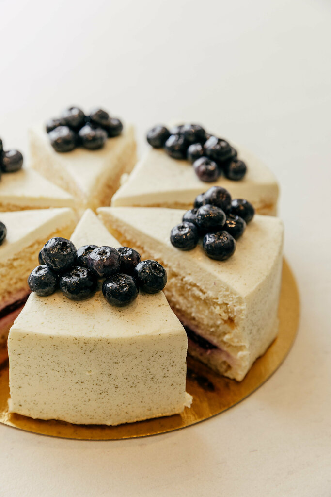 В основе тарталетки хрустящее миндальное сабле. Внутри нежный сливочно-сырный крем с прослойкой малинового конфитюра. Тарталетка украшена свежей голубикой, которая придает десерту освежающий вкус.