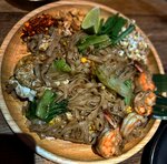 Яичная лапша ручной работы, обжаривается в соусе том-ям, с добавлением сливок из кокосового молока и овощами гриль (лук, перец). Внимание!На креветках присутствует хвостик, сделано это в целях поддержания вкусовых особенностей блюда с креветками/...
