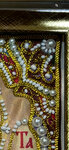 Багет качественный, как и стекло, но всегда сдвигают бусы и бисер при обрамлении и не поправляют, как сдвинут, так криво и остеклят. Им совсем не важно, что изделие смотрится неаккуратно. Хотя изначально весь бисер стоял ровно. Фото того как было ровно до обрамления, и как стало после обрамления. Люди платят за икону, а тут кривизна такая. Полный непрофессионализм и наплевательское отношение к чужому труду.