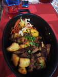 Уютное заведение под пальмами, вежливый и приветливый персонал. Взяли на двоих: борщ, картошку фру и сковородку со свининой. Очень вкусно, мясо нежнейшее и в специях. Довольны ужином - 5 из 5! Расположение прям у моря.;)