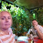 Отличное кафе, хорошее меню, быстрое качественное обслуживание. Кушали два вечера подряд, просто супер, порции большие, пища сбалансированная, винишко очень хорошее домашнее (но смотрите по себе, может унести) 😁. Музыка приятная и не такая громкая как в соседних кафе, живая музыка каждый вечер. Спасибо! Рекомендую к посещению! P.s. Отдельное спасибо, официанту Анне, за позитив и отличное настроение😉