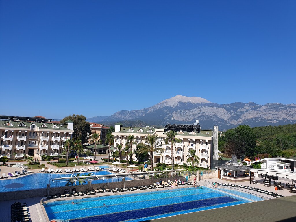 We had a rest in the summer of 2023 at the end of July. On the plus side: the top floors offer incredible mountain views. There is a hiking mountain trail nearby. Good dinners, awesome desserts. The hotel also has 2 swimming pools. Next to the pool there is a summer kitchen with delicious food and drinks from 12 to 16. it is not a long walk to the sea (5 minutes) on the beach there is a kiosk with drinks (free for hotel visitors). Paid SPA services (good), free hammam. The free beach towels are good. Free bottled water is available everywhere on site. Discos in the evening. Good alcoholic cocktails and alcohol. The room is clean and tidy, has air conditioning and a balcony with high chairs. The cleaning is top notch, the staff is very friendly and welcoming. Of the cons: the pools are dirty (very rarely cleaned), Breakfasts and lunches were scarce (flies are constantly flying in the dining room). Most of the dishes are too salty. The beach is VERY SMALL (the beach is named from the hotel) there are not enough sun beds, awnings too, the pebbles are large. There is an endless market around the hotel. It is quite difficult to walk quietly. Very loud music until late at night. Water outages in the evenings. The young staff hardly understand even English (I had to communicate with them in sign language) Keep in mind the expensive bus to Kemer.