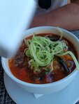 Красивое место, вид на море, официанты любезные, приветливые, рыба на мангале очень вкусная, шашлык сочный. НО!!! Цены в прайсе и в чеке очень отличаются, порядком на 300-500р.!!! Лучше переспросить тогда, а ещё лучше переделать прайс! И овощи на мангале вкусные, рулетики из баклажана с орехами вкусные, но картинка в прайсе и подача совсем разные! Подали на стол, будто с другого стола украли. Я такое видела в первый раз, чтобы чери порезали на 4 кусочка, а рулетики очень очень малюсенькие. Овощи на мангале тоже 4 маленьких кусочечка. В целом из 10 - 7 баллов поставить можно