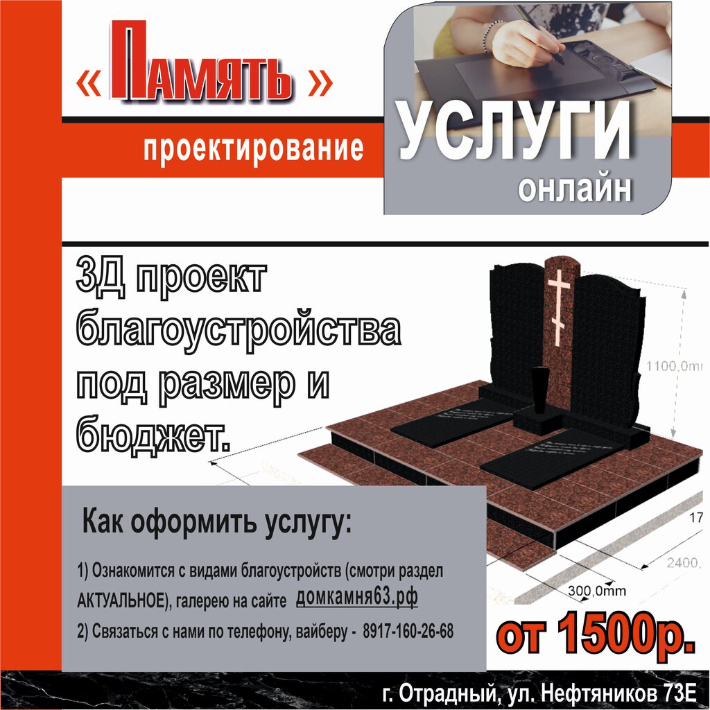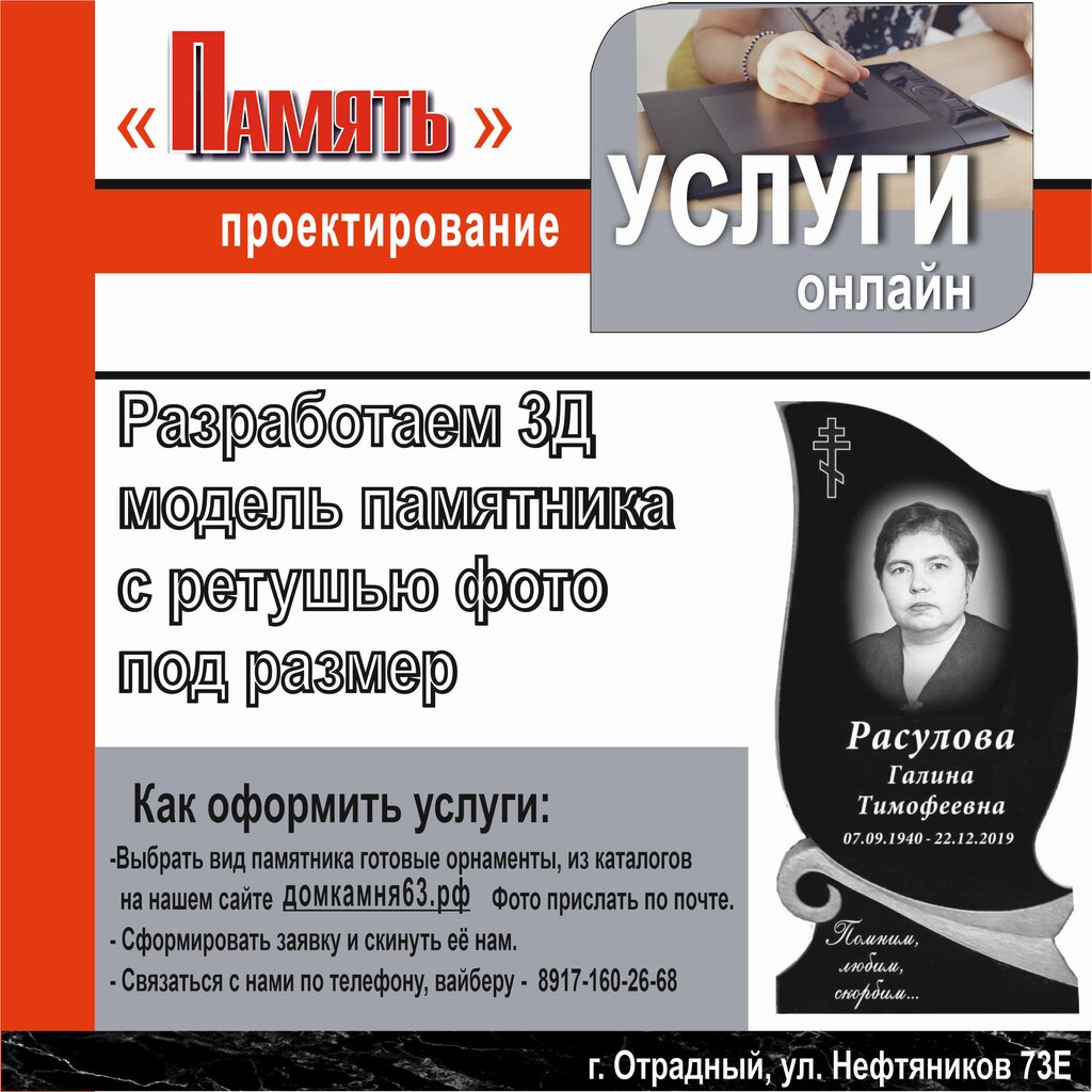 Production of tombstones Pamyat, Otradniy, photo