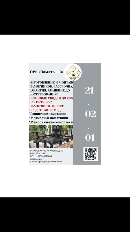 21-01-01 Мы обеспечим полный комплекс услуг, учитывая все нюансы и деликатно выполнив необходимые процедуры. с уважением, ОРК "Память-В"