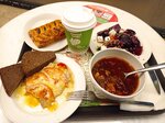 Была приятно удивлена поситив это место. Попала сюда случайно. Со стороны кажется, что это кондитерская, но на деле кафе со шведским столом. Ассортимент огромный, на любой вкус. Мне очень понравился салат из свёклы с кеноа. Место уютное, чистое. Ценник средний. За скачивание приложения я получила кофе Латте в подарок. Однозначно буду приходить ещё. Рекомендую. Это радость моего дня.