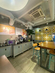 Заходила в будний день после обеда, посетителей было не очень много, свободные столики имелись, даже у окна с розеткой, что было актуально. Попробовала суфле из курицы со шпинатом, очень даже вкусно, нежно, не сухо. Чай был зеленый с имбирем, объем чайника небольшой, вкус не искусственный, эффект согревающий присутствовал. За две позиции по цене вышло 500 рублей. По выпечке не подскажу, не брала, выбор блюд показался приличным, обслуживание вежливое, интерьер приятный