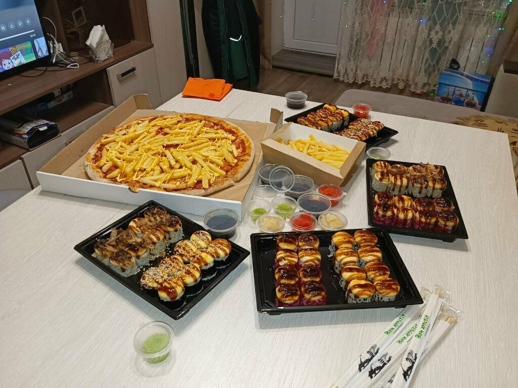 Привезли все хорошее, что очень порадовало, была доставка на 12:00, с точностью до секунд было все доставлено, вкусная пицца с морепродуктами, суши, роллы тоже понравились. Будем заказывать еще, рекомендую.