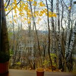 Чудесно! Очень, очень вкусная пицца!, вкусные десерты (пробовали несколько нежнейших маффинов), чисто, тихо, уютно, огонечки горят 🥰 Очень красивый вид на парк и на лес (кроны деревьев как на ладони) Отдельное спасибо за игрушки для малышей 🔥