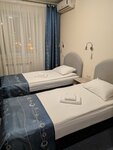 Номер площадью 16-18 м.кв. Размещение 1-2 человека. Две отдельные 1-спальные кровати с ортопедическими матрасами, прикроватная тумба, компьютерный столик, стул, LED-ТВ с USB, кондиционер, зеркало, холодильник, шкаф. WI-FI. Душ, туалет, раковина, фен