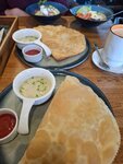 Очень приятное заведение: начиная с интерьера и заканчивая кухней. Заехали пообедать спонтанно, ориентируясь на отзывы в картах, и не прогадали. Чебуреки отменные! Подают с куриным бульоном и очень вкусным соусом. Друг заказывал ещё куриный шницель с картофельным пюре - тоже хорошо приготовлено. Десерт «сметанник с черникой» что-то невероятное: нежный мусс, несладкий + ещё шарик мороженого. Рекомендую к посещению однозначно.