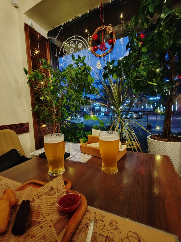 Одни плюсы! Расположение кафе в небольшом отдалении от прогулочной зоны. Вкус всех блюд отменный! Рекомендую Печень по-венециански. Томатный суп тоже вкусный. Обслуживание отличное! Подача быстрая даже при полной посадке. Оформление блюд по стандарту. Интерьер не напрягает. Музыкальное сопровождение спокойное, не громкое. Можно общаться не напрягая голоса. Туалет чистый.