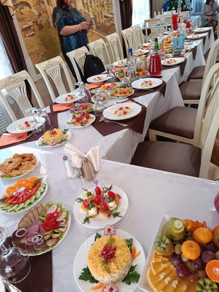 Плюсы. Чисто, приличный интерьер, но площадь зала метров 20, не больше. Сама еда вкусная, лагман и Цезарь с креветками фото прилагаю. Минусы. Грязные окна, настолько что не видно ничего, хотя здание стоит на горе, и вид красивый. Обслуживание - это две бабушки, одна на кухне, вторая заказы принимает и тоже на кухне помогает. Подходят только чтобы принять заказ. Грязную посуду, дозаказ еще блюд и т.д. - это встаешь и идешь на кухню к ним и говоришь, что тебе нужно. Время приготовления. Два Цезаря готовили 45 мин (мы 3 человека, были единственные гости). Лагман и стейк из семги -1ч30мин. Ужас. Думали не дождемся. Цезарь - с голодухи съедобно, но гора майонеза и 4 микро креветки, как бэ заявленных денег не стоят. Половина меню на стоп листе, так как нет необходимых продуктов, например сыра, фруктов и т.д... 🤦 но об этом вы узнаете, только при заказе. Не рекомендую.