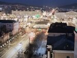 В здании расположено достаточно большое отделение сбербанка. Круглосуточно работают банкоматы. Но я хочу рассказать не о торговом центре "Панорама", а о том, что находится на крыше. А на крыше есть купол для свиданий! Но в отличии от ресторана "Форест", он здесь один. Ведь каждой паре хочется побыть наедине, а не созерцать другие пары. Отсюда, с крыши, открывается отличный вид на улицу Ленина. Она как на ладони. Чудесный вид на площадь Ленина! Особенно красиво , когда стемнеет и включается в городе иллюминация. Можно заказать саксофониста или скрипача. На выбор Вам подготовят букет. Можно заказать клубнику в шоколаде. Время свидания рассчитано на 1 час, но его можно продлить. В пакете Премиум время увеличено до 1,5 часов. Здесь Вас ждёт накрытый стол с "Сан Стефано", конфетами, фруктами, соком и чаем. А также суши. В куполе тепло - включен обогреватель. Очень романтичная обстановка! Супруге очень понравилось!!!