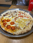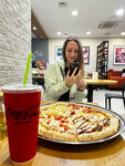 Pizza with fluffy dough and lots of toppings. This is not an exquisite version of pizza, it's about a lot, satisfying and quite tasty! The service is like in a regular cafe (fast food), nothing special, but not bad either. The waiting time is 15 minutes on average.