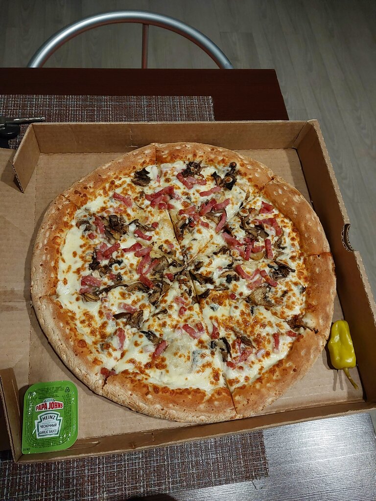 Был недавно в Папа Джонс в Иркутске — тот, что совсем рядом с аэропортом. Зашёл просто перекусить перед рейсом, а в итоге задержался, потому что неожиданно уютно и вкусно. Место небольшое, но аккуратное, с теплом — не как в типичных сетевых точках, где всё на поток. Здесь чувствуется, что ребята стараются, даже если у них стандартная франшиза. Пицца — вот за что стоит зайти. Тесто мягкое, но не рыхлое, с хрустящей корочкой по краю. Начинки не жалеют, соус фирменный, с лёгкой сладостью и пряностями — тот самый вкус, из-за которого потом вспоминаешь. Я брал "Пепперони" и "Мясную" — обе огонь. Горячие, свежие, будто только из печи (а не из микроволновки, как это часто бывает). Порадовало, что кофе нормальный, не разведённый. Можно спокойно посидеть у окна, наблюдая, как самолёты взлетают — атмосфера у этого места особенная, между дорогой и домом. Вообще, история самой сети тоже интересная. Papa John’s начинался с маленькой пиццерии в США, когда парень по имени Джон Шнаттер продал свою машину, чтобы купить духовку и начать бизнес. Его принцип — "лучшие ингредиенты, лучшая пицца" — до сих пор чувствуется, если попадаешь в удачную точку. Иркутская — как раз из таких. В итоге: если вы в аэропорту и хотите поесть не наспех, а по-человечески — загляните. Там просто, но вкусно, без понтов и с тем самым домашним вкусом, которого так не хватает в дороге.