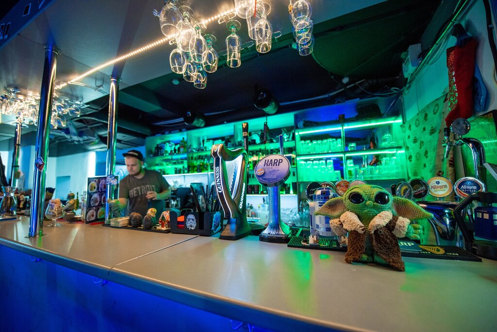 Вас порадует не только интерьер (особенно если вы поклонник не только звёздных войн, но и вархаммера, марвел, DC), барное меню и меню еды, и закусок, но и возможность поиграть с друзьями в настольные игры. Взяв одну из тех, что есть там ( а там хоть и не такой большой выбор, как в некоторых анти кафе, но зато можно найти игру на любой вкус и количество игроков), так же вас ждёт приятный сет приглушённой музыки, который позволит насладиться общением с друзьями в неформальной обстановке.