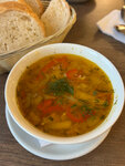 Зашли покушать, были рядом в мотосервисе. Небольшая кафешка, на витрине различная выпечка. Чай, кофе , мороженое. Мы ели суп лапша куриная и хачапури . Норм 👌 Персонал хороший. Чисто .