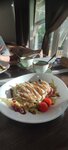 Рука не поднимается поставить больше двух звёзд. Очень разочарована данным заведением. Обслуживание долгое,официанты не подходят убрать грязную посуду пока не принесут другое блюдо. Принесли чайник с чаем,потом суп,хотели принести штрудель с мороженым (пришлось объяснить почему его следует подать после основных блюд) Подача между блюдами очень долгая,хотя в кафе было занято только два стола. Заказанные блюда не порадовали. Заявленный салат с кальмаром гриль в меню,почему то просто варёный и не гриль совсем,и дико кислой заливкой🤷‍♀️ Штрудель выгладил очень аппетитно,но это единственный плюс тк он был сырой,тесто не пропеклось. Сырные палочки внутри были холодные,тк они с заморозки а до нужной температуры их не довели.
