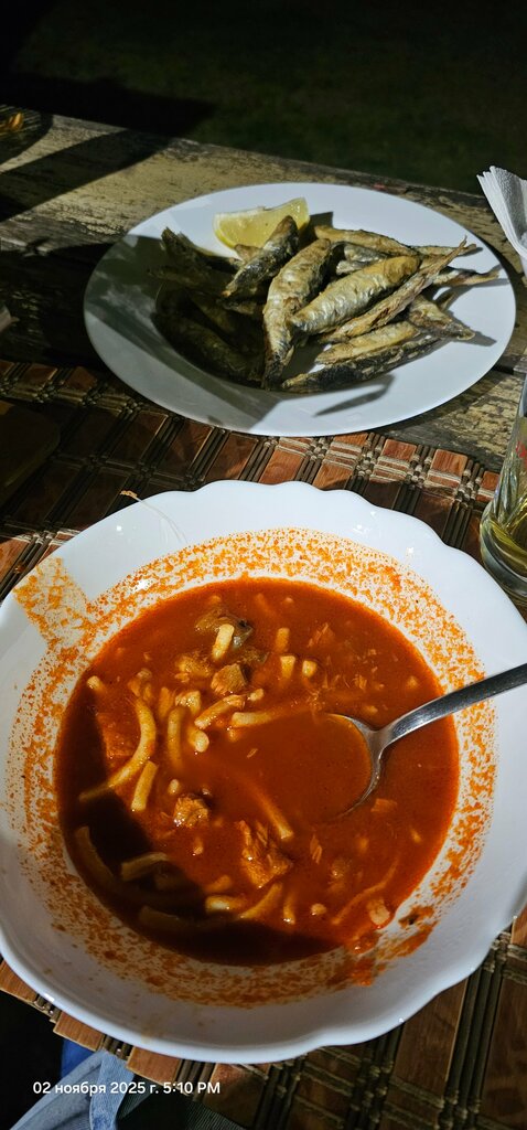 A very cozy place, a unique atmosphere. The restaurant is located on the first line of Palich, the sunset view is simply unreal! Sincere service, low prices and excellent quality of food and drinks! Chorba is just something with something, I highly recommend trying it! It's also a great fish.