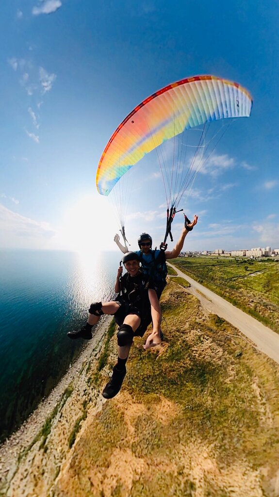 Александр, спасибо за классный полет, новые позитивные эмоции и увлекательную экскурсию - узнала много нового! С профессионалом не страшно летать в новом с виду немного пугающим месте (высокий берег, отвесные скалы). А еще полет проходит под нереально красивым крылом радужной расцветки - рай визуала. Отдельное спасибо за трюки - прям качели и спиралька - огонь!:)