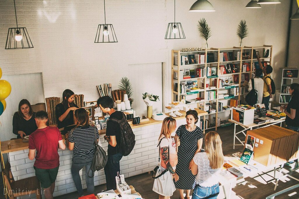 Атмосферный книжный магазин с интересными книгами по совершенствованию своих качеств, как личных так и профессиональных. Вкусный кофе и располагающая к вдохновению обстановка!