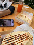 Зашли компанией вечером специально посмотреть фильм под открытым небом, классный формат в летний сезон. Столиков довольно много, есть купол, под который можно расположиться во время дождя, в нашем случае так и было. Заказали питу с курицей и мраморной говядиной, в составе даже картофель фри, много соуса, жирно, но вкусно для стрит фуда, зожникам, скорее, не зайдет) а вот с напитками не все так радужно, в жару заказали лимонад с лавандой, а это уже разлитая и упакованная водичка, такая сладкая, что слезы на глазах((( Алкогольный апероль точно такой же - упакованный и невкусный. Просмотр фильма удался, все слышно, видно, можно пледик взять, на некоторых столиках зажигают свечи, а вот «прохладительные» напитки оставляют желать лучшего.