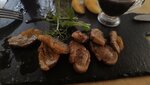 Интерьер интересный. Кресла удобные. Можно с детьми. Но вечером хотелось бы отдыхать от их криков. Теперь о кухне. Заказали форель , утиное магре, салат из тунца, жареный сулугуни и литр лимонада. Лимонад - просто супер. Сыр отличный, форель довольно вкусная, хотя ждать её пришлось так долго будто её вылавливали. Листья зелени в салате - безумно кислые. Ну, это, как говорится, на любителя. Но утка... Это не грудка, а кик-то резиновые пережаренные кусочки. Очень жёсткие и мало съедобные.