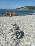 Из плюсов: легко найти место для стоянки, большая площадь турбазы,вечерняя тусовка у бассейна, его наличие, виды с смотровой площадки, природа(закаты, сосны на территории). Собирали дикую ежевику, встретили черепаху, видели енотов. Возможность проживания с питомцем за отдельную плату. Минусы: условия размещения. Проживали в домике- косметический ремонт, отсутствие посуды(есть общая кухня с плитой), неудобные старые подушки, постельное белье. стоимость размещения не соответствует условиям комфорта. На дикий пляж ведет длинная металлическая лестница. Отдыхающих очень мало. Пляж и море в больших скользких камнях , для входа в море расчищали дно. Набрали много коряг для поделок. Проживали 4 дня .