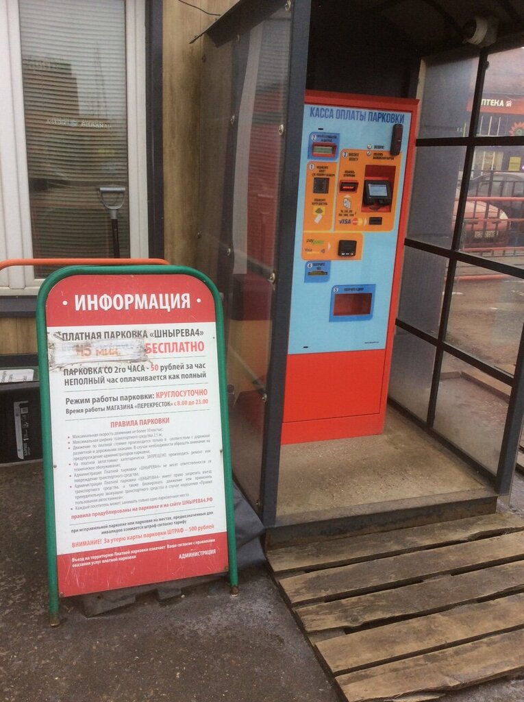 Платная парковка «Шнырёва4»: не хуже платных других, может даже лучше, пока. КАК НАС (и всё у нас, чуть не до воздуха) ПРИВАТИЗИРУЮТ. ПРИУЧАЯ, ПО ШАГАМ. Шаг 1. Сначала у жилого дома отбирают кусок придомовой земли: мол, эта земля не ваша, а общая, т.е. государственная, т.е. местные чиновники могут ею приторговать. Но с исключительно БЛАГОЙ ЦЕЛЬЮ – организовать парковку у супермаркета «Перекресток» (далее «П») и соседней, по расположению и единому холдингу Х5, «Пятёрочки» (далее – «5»). Тем более, что и земля та примыкает к нежилому помещению, внедрённому в жилой дом и занимаемому сейчас той же самой «5-ой». Потому в объявлениях при шлагбауме так до сих пор и написано, что, мол, ТОЛЬКО ДЛЯ ПОКУПАТЕЛЕЙ «П» и «5». Любопытно, как это предполагалось проверять – следя за тем, куда пошли, или выпуская со стоянки по чекам на покупки? Естественно, это не делалось и не могло быть – поначалу даже шлагбаум не закрывали. И так естественно происходит переход к шагу 2. На котором сия платная стоянка несколько отходит от вроде бы породивших её продовольственных магазинов и начинает теперь жить собственной жизнью. А значит ужесточать те самые платные условия. Пока ещё бесплатными сохраняются - но уже не первый час, а всего 45 минут после заезда - которых вроде на покупки в одном магазине и достаточно, а в двух уже время поджимает. (При этом новый тариф сравнительно недавний и изображён нашлёпкой на объявлении – см. фото). Скорее всего, недолго ждать и шага 3. На котором, с платной парковки как уже совершенно самостоятельного «бизнеса», её собственники захотят получать как можно больше денег (у бизнес-россиян иначе не бывает). Потому нынешняя, ещё как-то доступная плата за час (50 рублей, по меркам недалекой, сильно центровой Москвы немыслимо низкая) будет сильно, возможно в разы, повышена. (А почему в подобных ситуациях местные чиновники норовят ориентироваться на тонущую в деньгах и способах их добычи нынешнюю россиянскую столицу, а не на условия какого-нибудь зарубежного городка, сопоставимого по размерам, с невысоким и похожим на наш уровнем жизни – так то не из-за корысти, а исключительно от приверженности к прогрессу). Потому что вовсе не объявленные поначалу цели были, весьма вероятно, в замыслах интересантов «проекта» по извлечению средств из тогда ничейной истринской земли, отнюдь. Скорее уж стоянка предполагалась для удобства очень уважаемых посетителей ещё одного соседнего заведения - нависающей над супермаркетами и стоянкой «ЧАЙХАНА ИСТРА» (о которой отдельный отзыв). Хотя никто не доказал, что очень платная стоянка будет удобнее для жителей и гостей Истры, чем свободная, какие ещё до сих пор имеются перед многими другими супермаркетами по всей нашей необъятной стране. И даже кое-где пока остаются в теперешней Москве, вовсю собянинской. Несмотря на все старания сильно инновационных властей - совместно с подобными «инициаторами» - справиться с подобным бесхозом. Не приносящим никому конкретно никакого постоянного и неплохого прибытка А это нынче просто нонсенс, невозможное. Так и живём. В-общем, конкретная стоянка название своё (см. самое начало) полностью оправдывает, действительно это оно самое, лучше и точнее не назовёшь