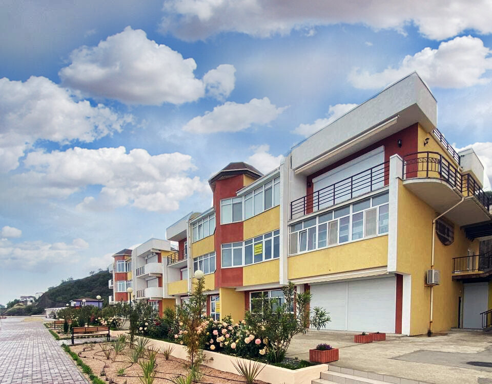 Плюсы-чисто, тихо, красиво. Апартаменты хорошие. Третья линия-до моря 5 минут ходьбы. Есть магазинчик. Небольшая детская площадка. Минусы-пляжная полоса отсутствует. Загарать либо на набережной, либо на волнорезах. Единственное кафе никогда не работает. Кто захочет вечером пойти развлечься-здесь негде