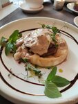 Облепиховый морс - очень насыщенный вкус, в меру сладкий. Скрамбл с томатами - большая порция, приготовлен по домашнему. Вафля с мороженым - отличное сочетание с клубникой