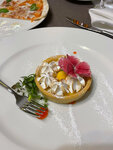 Одним снежным январским вечером мы с мужем заглянули в этот ресторан, чтобы отпраздновать 5 месяцев со свадьбы! Увидев цены, всплакнула, что семейный бюджет сегодня станет чуть меньше. Но такой день должен был быть отмечен чем то значимым, и успокоившись, пришлось заказать еду. Что ели: Маргариту - дополнительно поливали острым маслом (его предложил официант) Лазанью - большая порция, вкус классической обычной нормальной лазаньи меня не удивил, но мужу понравилось Кростини с карамелизованным луком и сливочным сыром - приятно удивило это вкусовое сочетание. Сладкий лук отлично гармонируется с солоноватым сыром) Лимонный тарт с меренгой - кислый лимонный курд идеально сочетался со сладким нежным кремом. Если вы любите десерты с лимоном вам точно понравится! Чизкейк «Сникерс» - тоже вкусно, но для меня слишком просто) Приятно удивила в чеке скидка 5 % благодаря оплате по QR-коду! Вышло чуть больше 2 тысяч, но учтите, что мы обошлись без напитков)