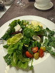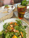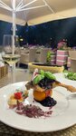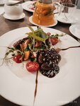 Ужинали вчера по случаю годовщины в данном ресторане. Цены ресторанные, но еда до цен не дотягивает. Салат с уткой и тыквенным соусом на троечку, абсолютно безвкусный с не спелым и кислым, по вкусу даже принятым за репу, манго. Форель с овощами тоже не вызвала особого восторга. Очень много сельдерея, который перебивает вкус всего остального. То же касается и цыплёнка по-провански. По интерьеру и расположению помещений так же есть вопросы: открытая дверь в туалетные помещения напротив такой же открытой двери на кухню и расположены они на очень близком расстоянии друг от друга