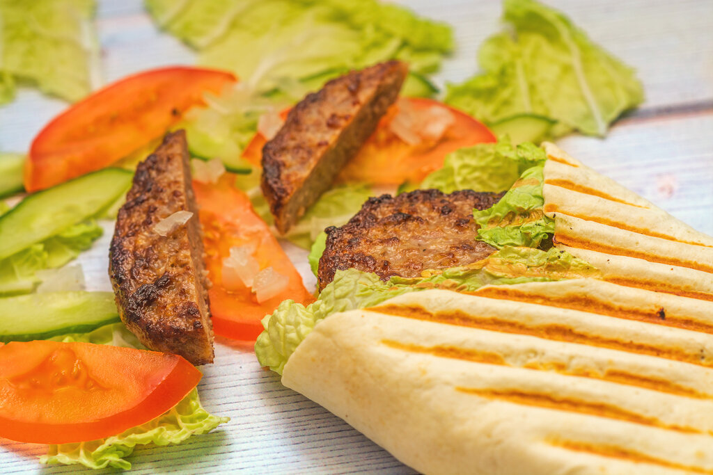 Идея хорошая, а с воплощением есть проблема. Большую с говяжьей котлетой готовили 34 минуты, а должны по нормативу 15. По одной стороны примерно 1/3 лаваша стала единым целым с фольгой. Котлета вкусная, но зачем в горячее блюдо класть свежие овощи, это не вкусно и как минимум добавьте/измените соус.