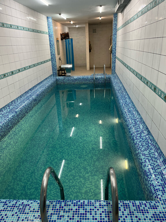 Большое помещение. Раздевалки отдельно от парилкой на цокольном этаже, что очень хорошо (нет сырости, можно посушить волосы). Парилка большая, жару достаточно. В бассейне вода не ледяная. В душевой 2 лейки. Можно из вёдра окатить себя холодной водой. В зале есть стол, сиденья, телевизор, чайник... Посещение может вместить около 10-12чел спокойно. Вообщем, советую.