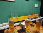 Интересное место необычность которого выраженно в выбранном способе подачи, с помощью поездов детской железной дороги. Напитки были свежи, цены демократичны.