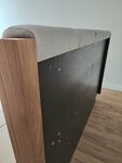 Утолщенные боковые стенки. Закругленные углы. Эксклюзивные хромированные ручки. Элегантное сочетание шпона орех и стекла графит. Срок гарантии: 24 месяца.
