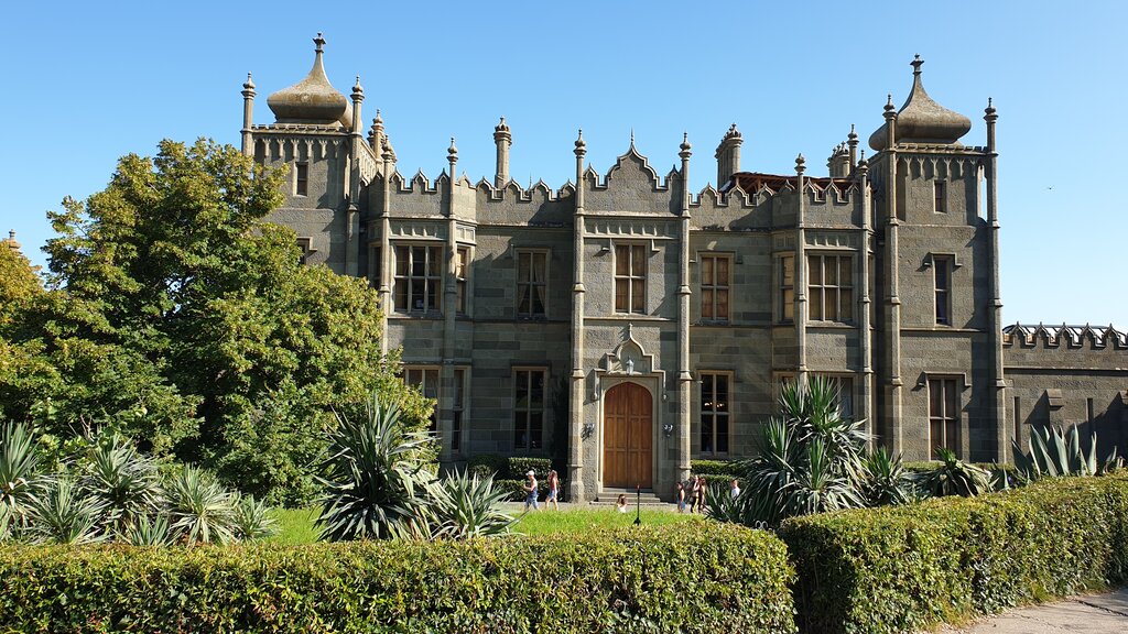 Воронцовский дворец утопает в прекрасном парке раскидыстых хвойных, вековых платанов и магнолий, каменных ступенек, журчащих водопапов и ландшафта безупречных форм ,линий и цветов. Райское место и сказочное одновременно.