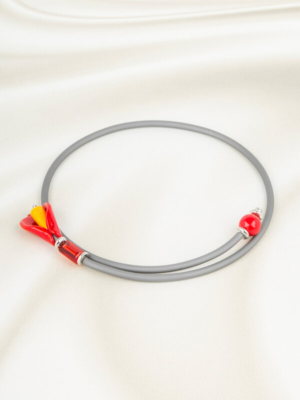 Колье из муранского стекла "Золотая история", черный каучук