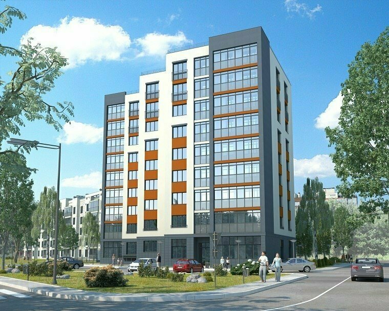 Жилой многоэтажный дом. На первом этаже расположены расчётный центр "Водоканал", стомотологическая клиника "Лакидент",пункт выдачи интернет заказов"Озон", на цокольном этаже расположен фитнес-клуб "Magmafit"