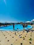 Отличный 🌴 пляж есть немного песок для детей. На выходе из пляжа два душа, есть туалет с горячей водой в раковине. Всегда есть всё необходимое, бумага, жидкое мыло. Есть огромная столовая в которой можно поесть за 700р ешь сколько хочешь, выбор блюд огромный. Есть детская площадка не большая но практичная. Можно с пирса порыбачить( мы ловили ставридку, на криветку) Можно погулять до корабельного маяка и даже подняться на него!!! С другой стороны маяка огромные буи бетонные на них много крабов которые греются на солнышке. А самое главное есть 👍 баня и большой бассейн!!! Рекомендую всем; приятного отдыха.
