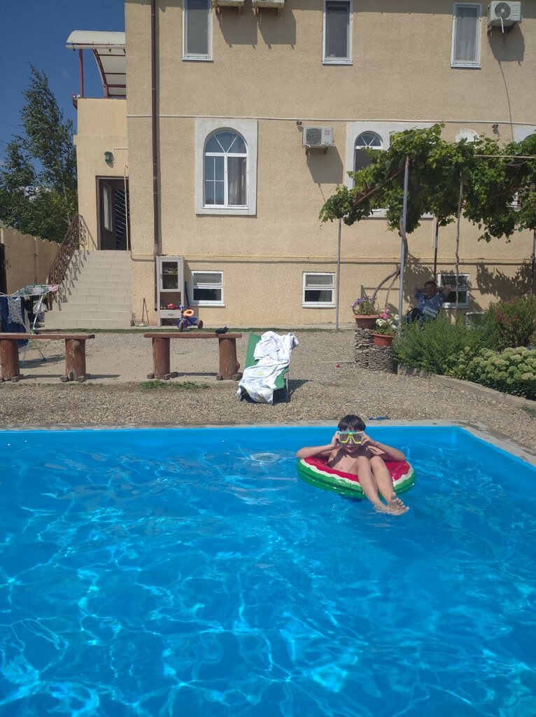 Бронировали трёхместный номер. Всё очень понравилось. Номер чистый, просторный, есть кондиционер, холодильник, телевизор в номере. Постельное белье, полотенца чистые. Кровати удобные. По запросу предоставили дополнительную подушку. В общей кухне есть всё необходимое для приготовления пищи: газовая плита, духовка, микроволновка, электрический чайник, 3 раковины, вся посуда и столовые приборы, масло, соль и т.д. На улице понравилось, что рано утром бассейн уже чистый, на ночь убираются матрасы с шезлонгов и качелей, чтобы утром всё было сухое! В общем, всё сделано с душой и с заботой о людях. Арендодатели очень приветливые, спокойные, милые люди. С радостью будем приезжать ещё) Спасибо большое!!!